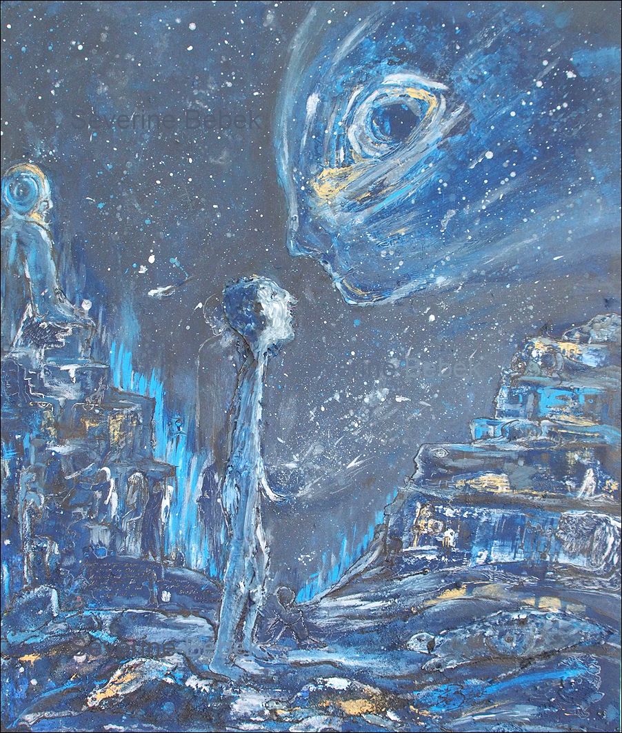 Kosmische Begegnung | 2018 | Acryl, Tusche auf Leinwand | 50x60cm / cosmic encounter | 2018 | Acryl, Ink on Canvas | 50x60cm